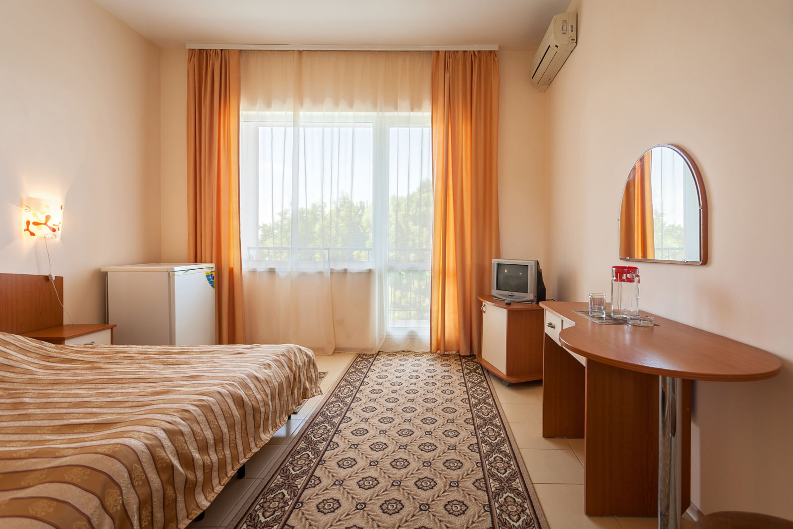 Площадь номера - 23 кв.м. 2 осн. места. 1 доп. место. Балкон. Мебель: вешалка, кровати односпальные /одна двуспальная кровать, прикроватные тумбочки, столик журнальный, стулья, шкаф. Оборудование: кондиционер, телевизор, холодильник. Санузел. Сервис: смена полотенец (1 раз в 3 дня), смена постельного белья (1 раз в 5 дней), уборка номера (ежедневно).